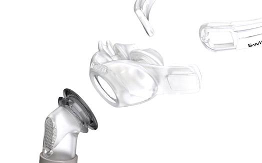 Le Swift FX Bella est si léger et si facile à utiliser qu'on le remarque à peine. Un contact réduit avec le visage et un design discret aident le patient à trouver le traitement moins intimidant et plus facile à accepter. Il s'adapte aussi à différents styles de coiffure.