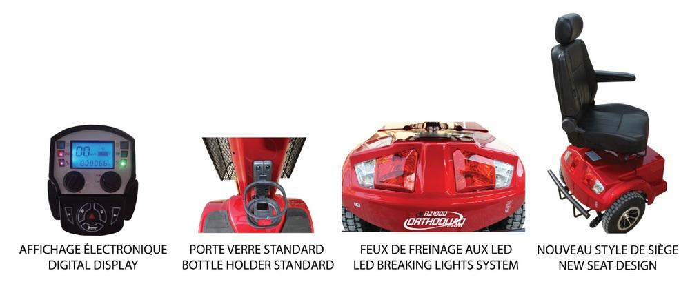 Le nouveau Orthoquad RZ1000 établit maintenant la norme dans le segment des quadriporteurs intermédiaires. Propulsé par un fiable et puissant moteur de 950 watts et jumelé à deux batteries de 55Ah, il peut atteindre une vitesse de 15 km/h avec une autonomie impressionnante. Avec sa suspension active aux quatre roues, le RZ1000 offre un haut niveau de confort même sur des terrains accidentés.