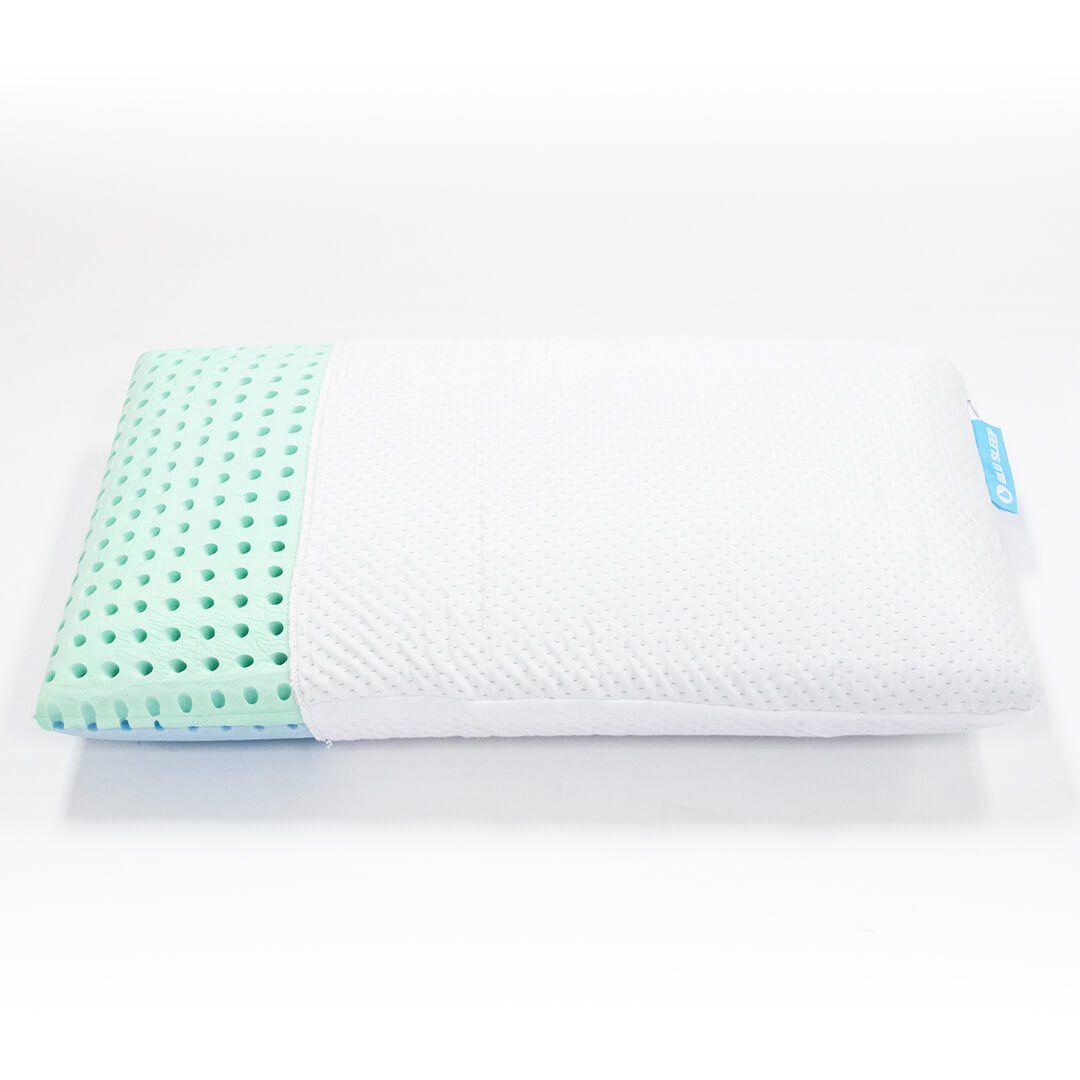 • Coussin double confort Bio Aloe et Ice Gel infusé à l’huile d’Aloe Vera.