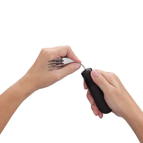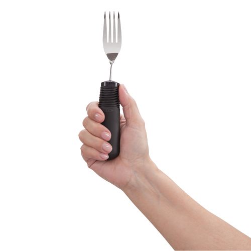 - Ustensile pondéré Good Grips - Fourche Les 6 oz de poids dans la poignée intégrée offrent plus de contrôle. L'ustensile atteint la bouche plus facilement. L'arbre métallique peut être plié pour une utilisation à droite ou à gauche. Passe au lave-vaisselle domestique. Sans latex.