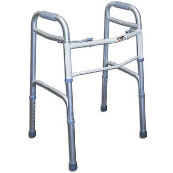 Plis et ouvre facilement avec la simple pression d'un bouton . Les poignées se barrent quand la marchette est ouverte. Largeur entre les mains courantes 19 " . Capacité de poids de 300 lbs .